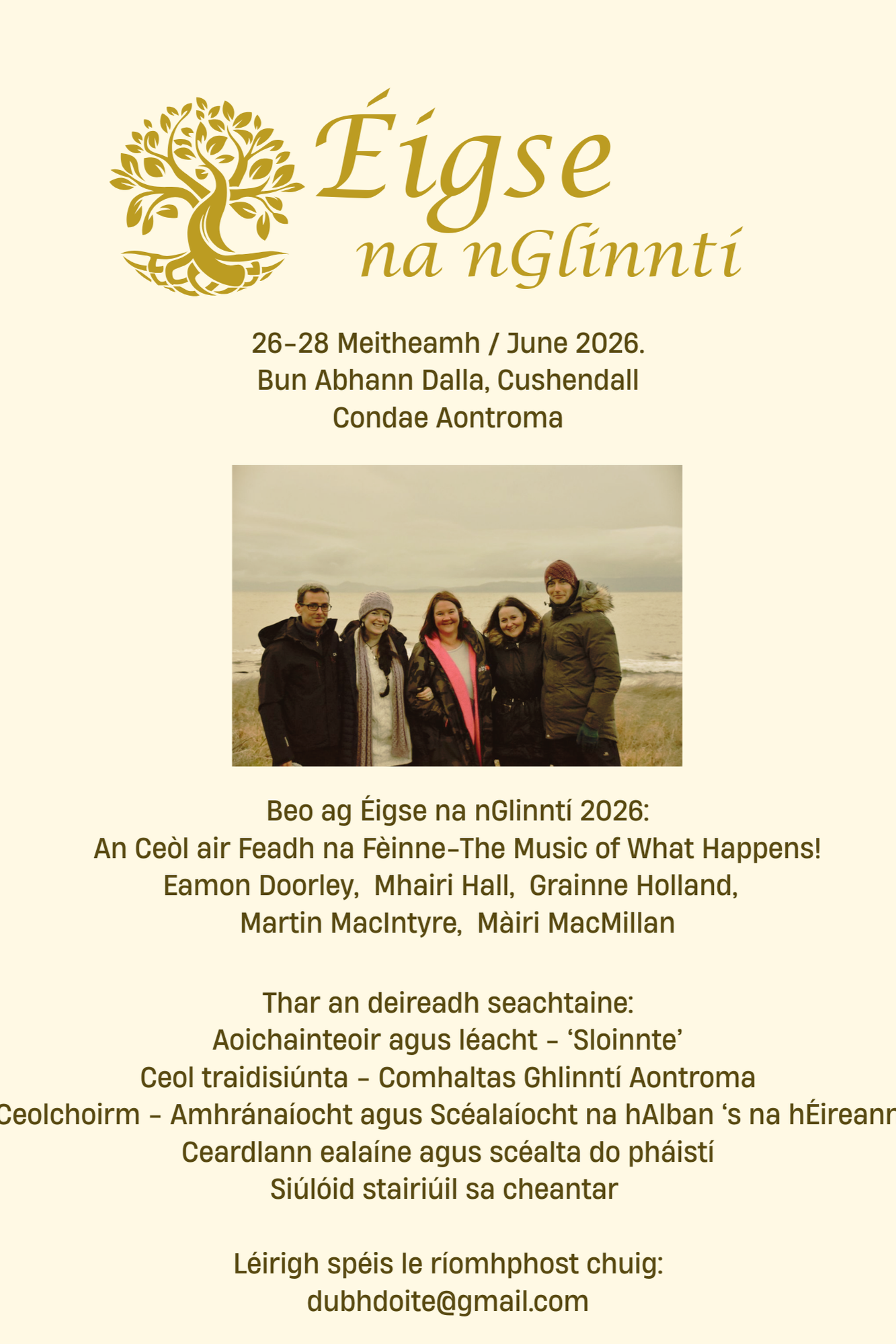 We are finalising our 2026 programme of events for this brilliant Irish Language festival in the Glens of Antrim. Scroll down to browse some of our past events. Tá muid iontach bródúil astu. We are very proud of them!